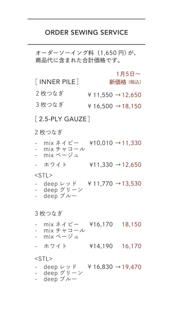 これまでの価格でご愛顧いただいてきた皆様には誠に申し訳ございませんが、SHINTO TOWELは2024年4月1日より現行商品の価格を改定いたします。