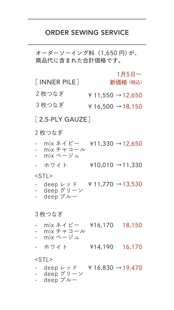 これまでの価格でご愛顧いただいてきた皆様には誠に申し訳ございませんが、SHINTO TOWELは2024年4月1日より現行商品の価格を改定いたします。